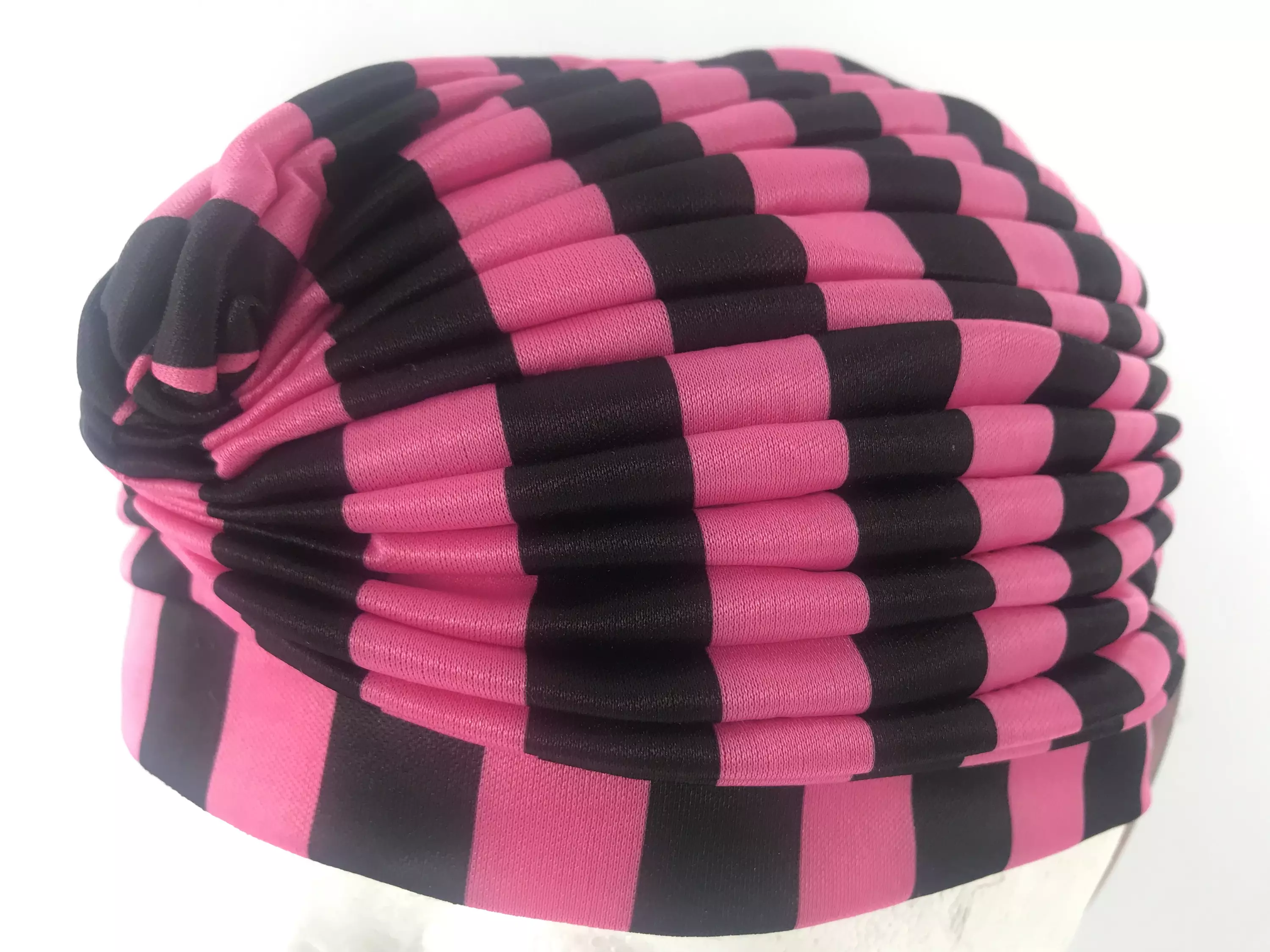 Turbaani, mustapinkkiraita. Bad hair day? Ei haittaa - tämä tyylikäs turbaani pelastaa päiväsi!! Joustavaa materiaalia, onesize. Sopii melkeinpä päähän kuin päähän