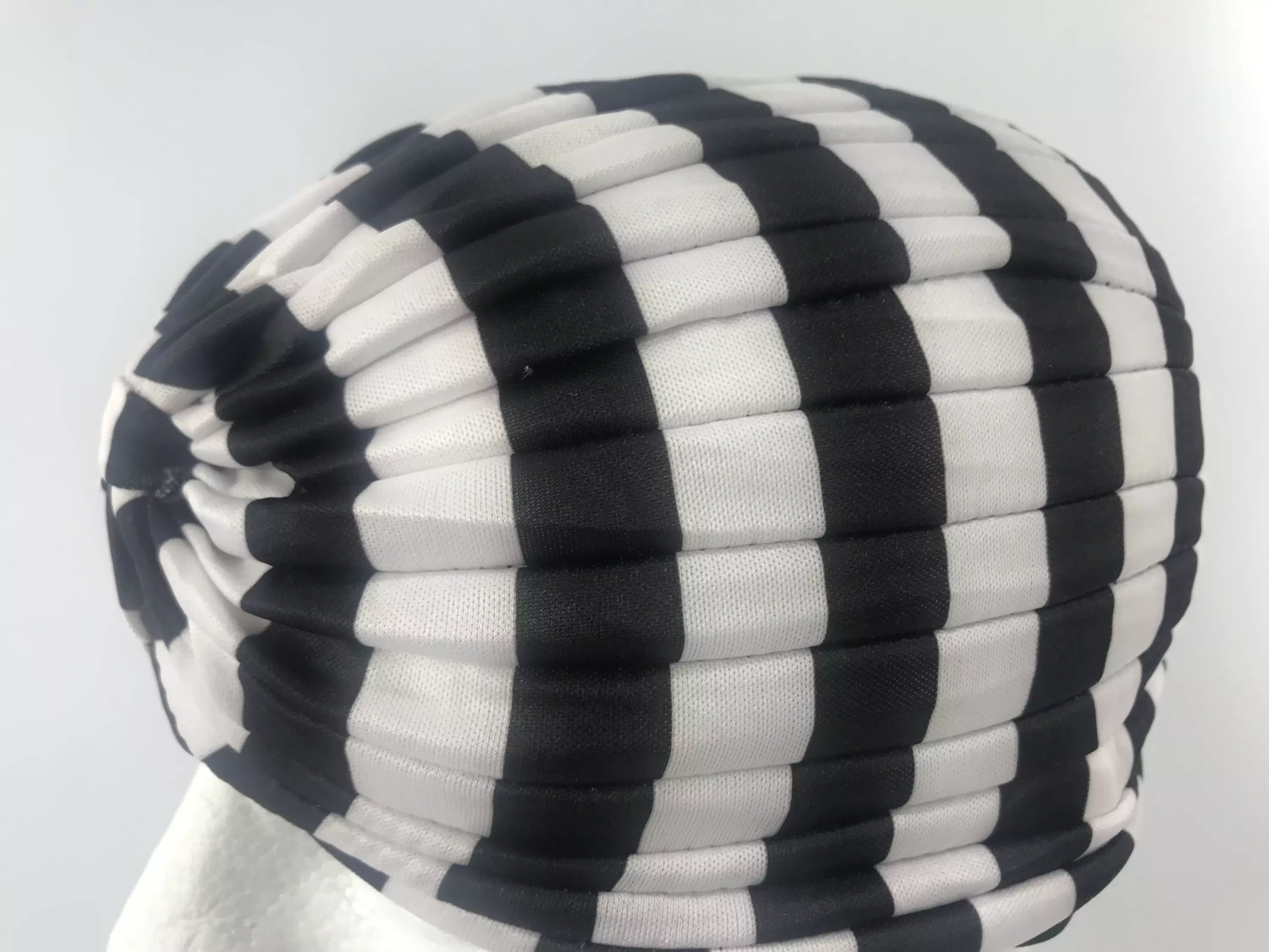 Turbaani, mustavalkoraitainen. Bad hair day? Ei haittaa - tämä tyylikäs turbaani pelastaa päiväsi!! Joustavaa materiaalia, onesize. Sopii melkeinpä päähän kuin päähän