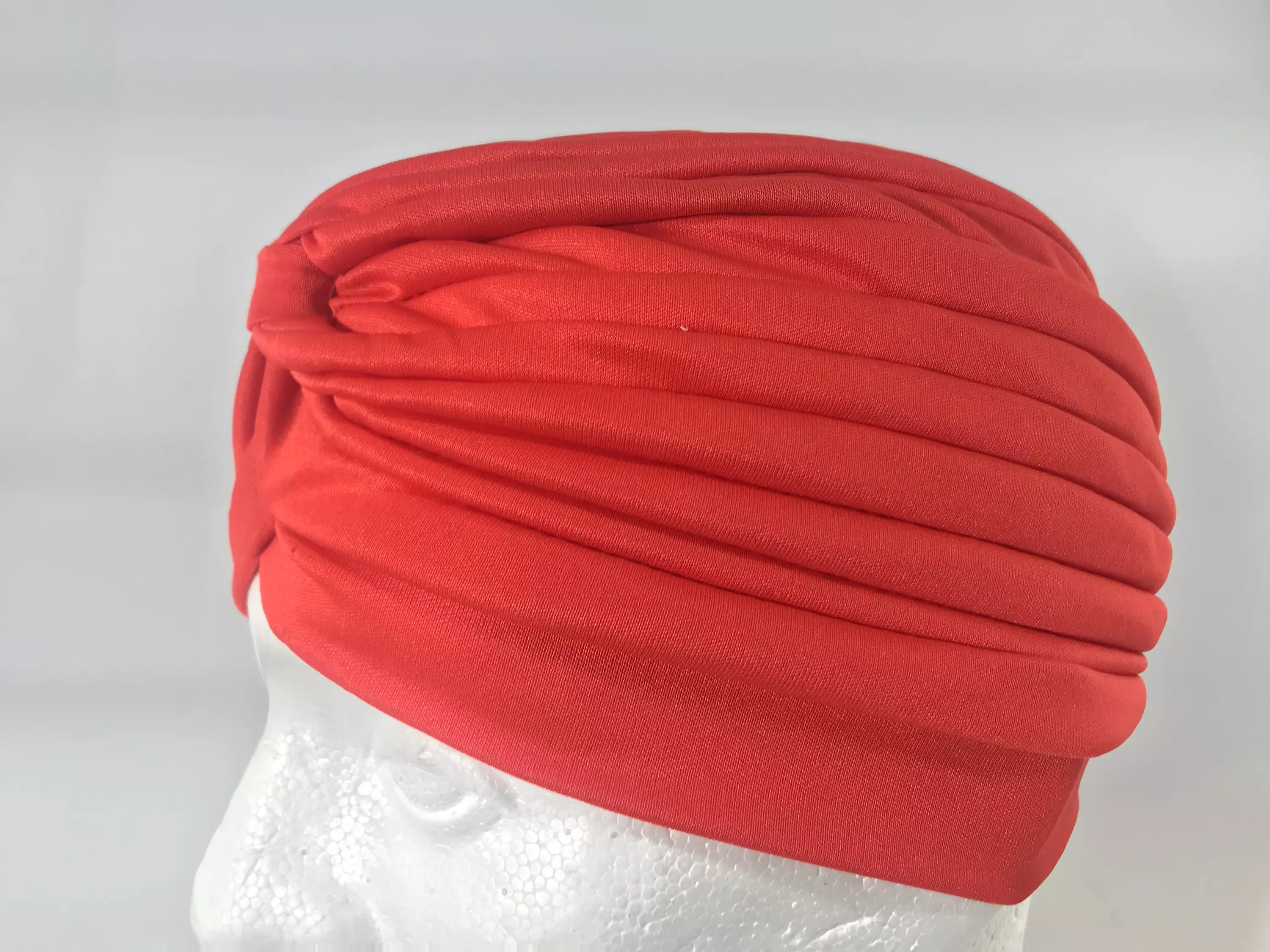 Turbaani, kirkas punainen. Bad hair day? Ei haittaa - tämä tyylikäs turbaani pelastaa päiväsi!! Joustavaa materiaalia, onesize. Sopii melkeinpä päähän kuin päähän