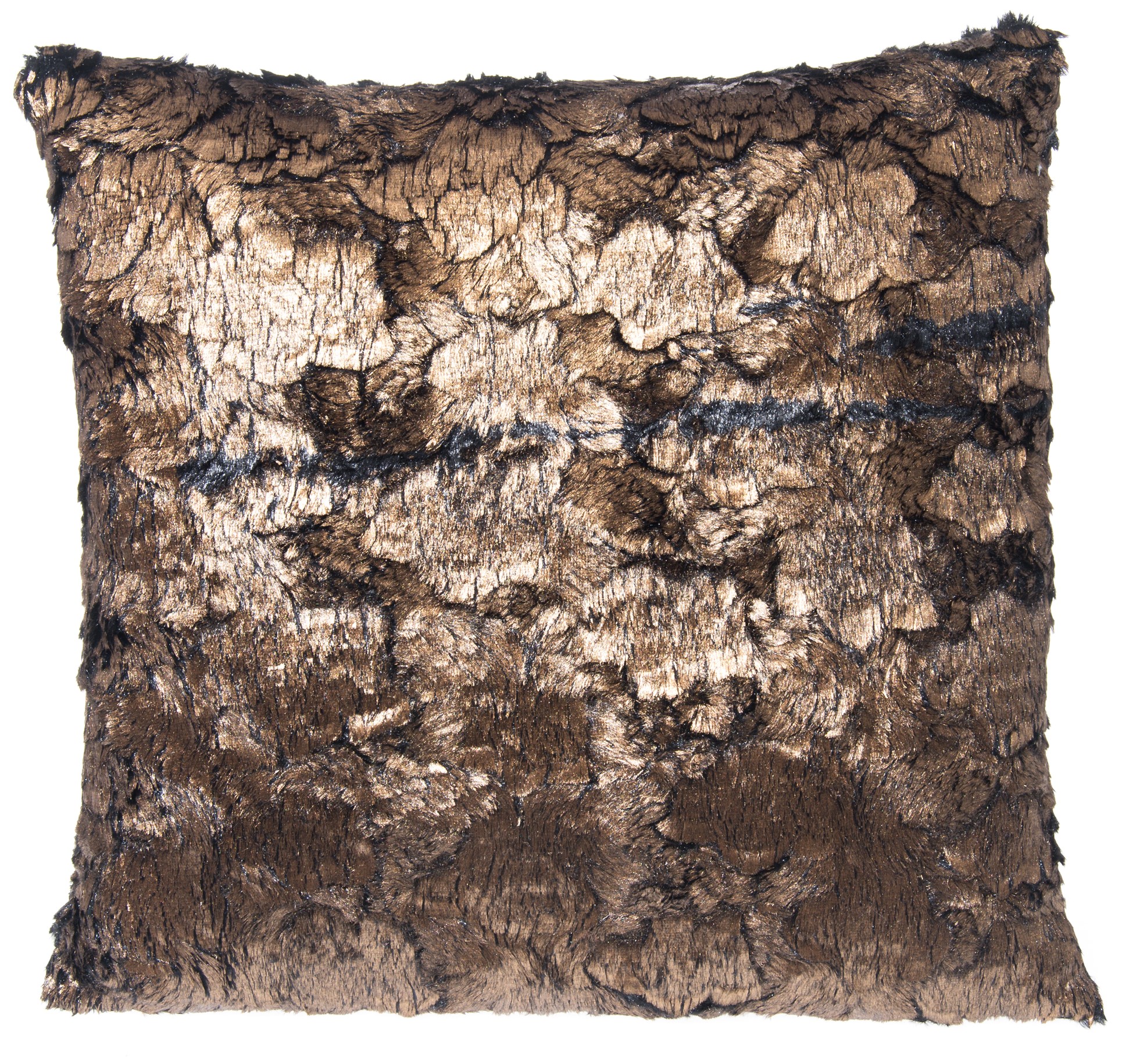 Tyyny, Kataja. Kaunis metallihohtoinen pörrötyyny. Tyynyn mitat 40 x 40 cm. Tyynyn päällipinta on pörröinen, tausta on yksiväristä fleeceä. Taustapuolella on myös vetoketju, jonka avulla tyynynpäällinen saadaan pestäväksi. Materiaali 100 % polyesteria.