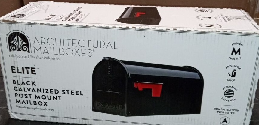 Postilaatikko USA musta. Gibraltar E1100BAM Elite Post-Mount Mailbox, Medium, Black Steel