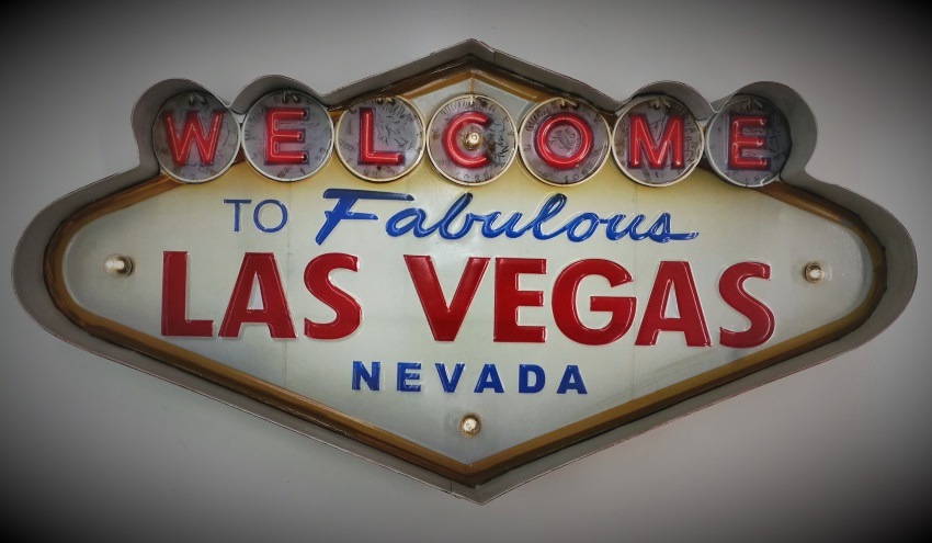 Valokyltti Las Vegas. Peltinen "Welcome to Fabulous Las Vegas"-valokyltti LED-valoilla. Toimii AA-paristoilla (ei sisälly pakkaukseen). Kyltin koko on 49 x 5 x 25 cm ja paino n. 620 g.