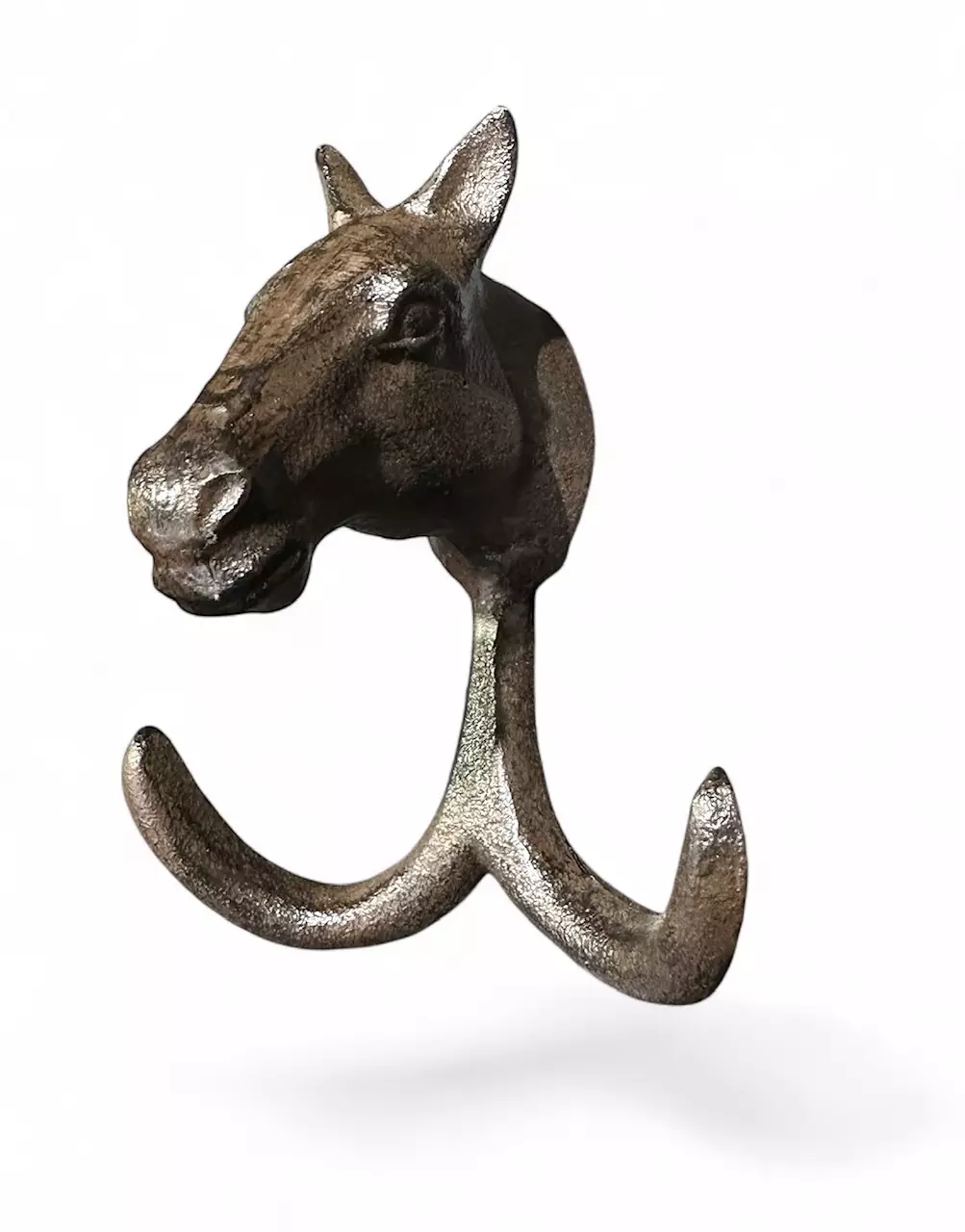 Valurautakoukku Hevonen. Seinälle kiinnitettävä pyyhe- / vaatekoukku. Koukussa valmiina ruuvinreikä, kiinnitysruuvi ei sisälly pakkaukseen. Mitat 10,5 cm x 12,5 cm x 8 cm (leveys x korkeus x syvyys).