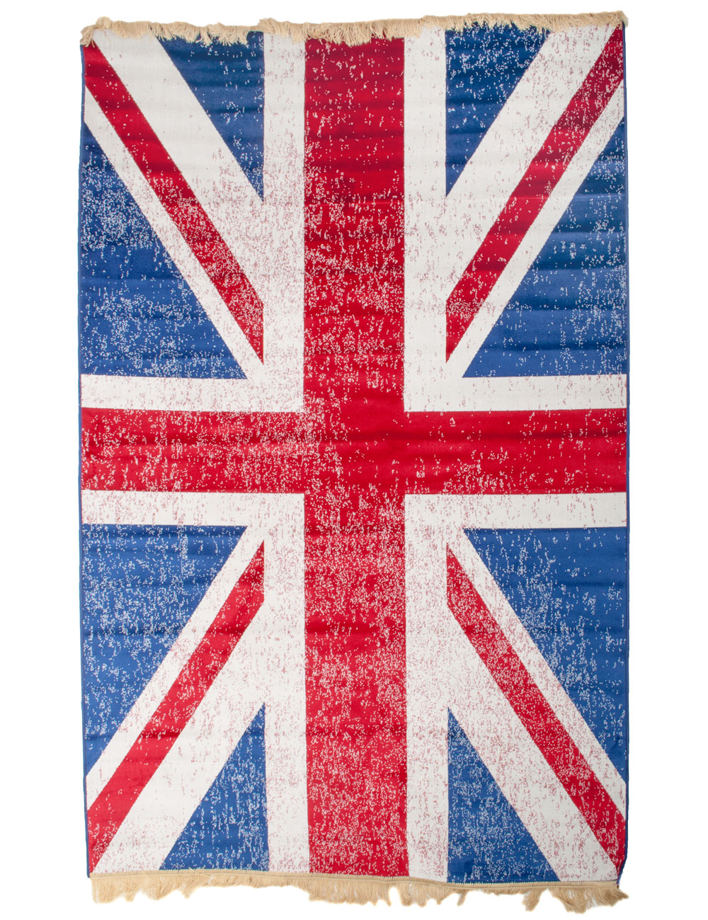 Viskoosimatto, Brittilippu, punainen, 140 x 200 cm. Maton materiaali 80 % viskoosia ja 20 % puuvillaa.