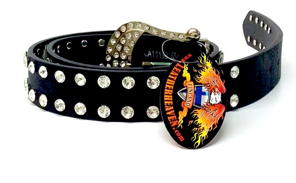 Vyö, 2-riviä, zirkon "timantti" . Vyö zirkon "timanteilla". Vyön pää koristeellinen. "Timantteja" 2 riviä. 4 eri kokoa. VYÖN LEVEYS = 3,2cm