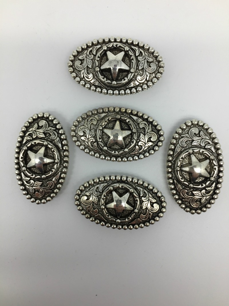 Vyökoriste ruuveilla, Tähti, soikea 5 kpl. Vyökoristeen koko 4 x 2 cm. Kiinnitys kahdella ruuvilla.