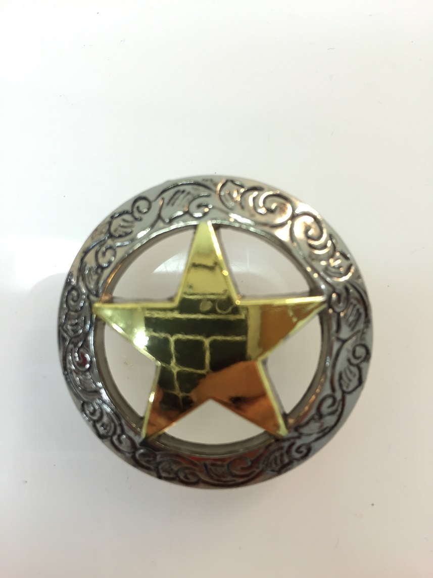 Vyökoriste ruuvilla, Tähti 1 kpl. Vyökoriste Concho jonka kiinnitys yhdellä ruuvilla. Niitti koko: halkaisija 3,5 cm.