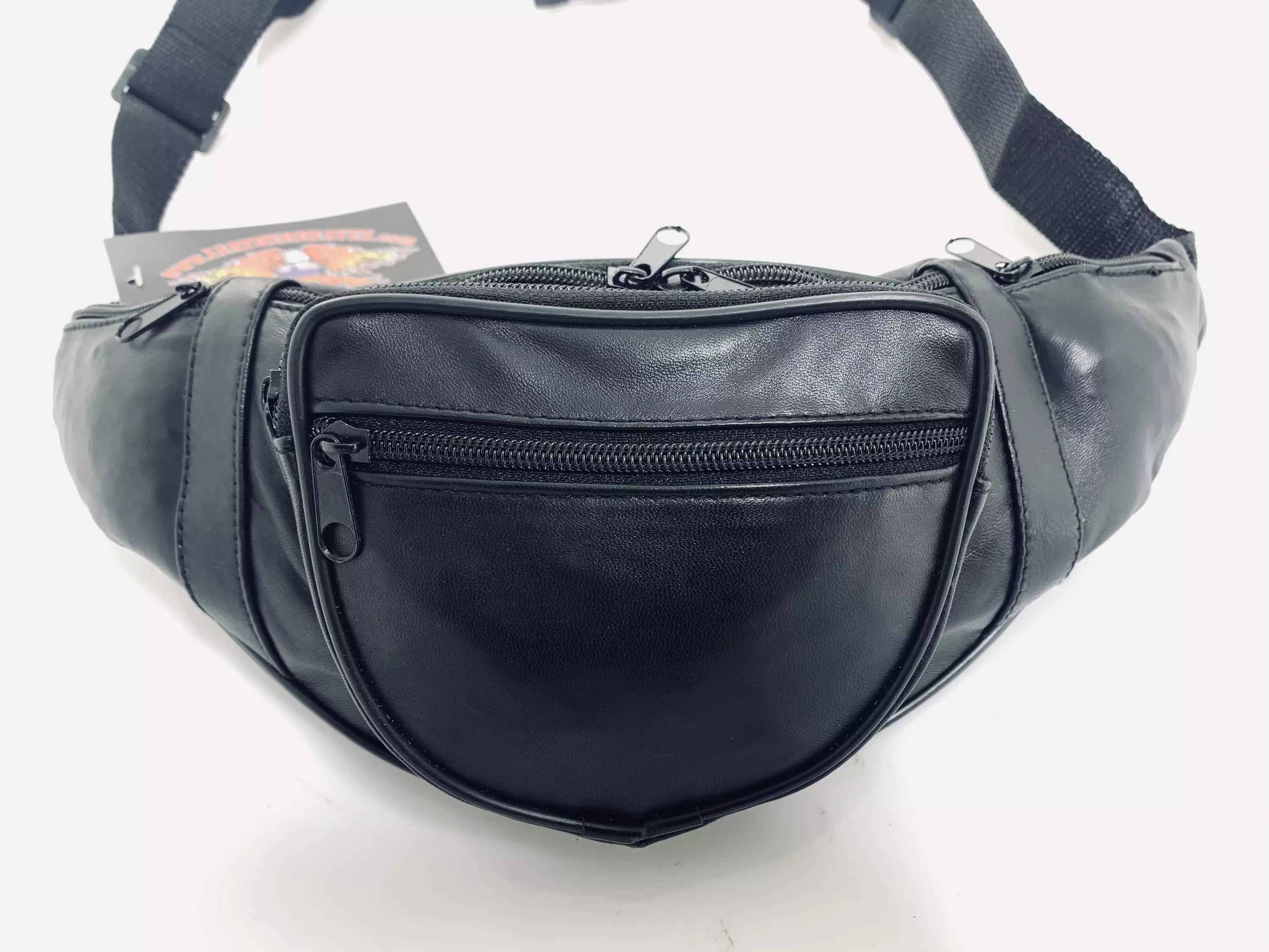 Nahkainen vyölaukku. Läpivärjättyä pehmeää mustaa lampaannahkaa. Säädettävä kangasvyöosa, pikakiinnityksellä. Keskilaukun leveys noin 20-cm kokonaisleveys nahkaosalla noin 40cm. Päällä taskuja ja sivutaskut, sekä piilotasku vartaloa vasten.
