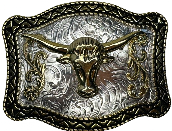 Vyönsolki Härkä 11x8cm Vyö solki musta cromi kulta western solk
