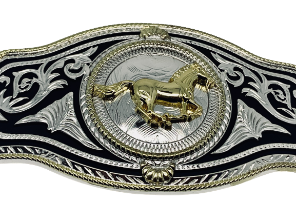 Vyönsolki hevonen musta, kulta, leveä Vyönsolki 17 x 8 cm