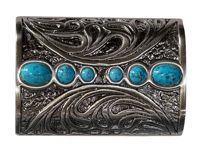 Vyönsolki Turkoosi kivi. Solki 77 x 55 mm, kuudella vaalensinisellä kivellä.