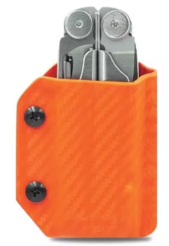 Käsityönä valmistettu jämerä ja kestävä Kydex -vyökotelo Leatherman Wave ja Wave+ malleille. Oranssi