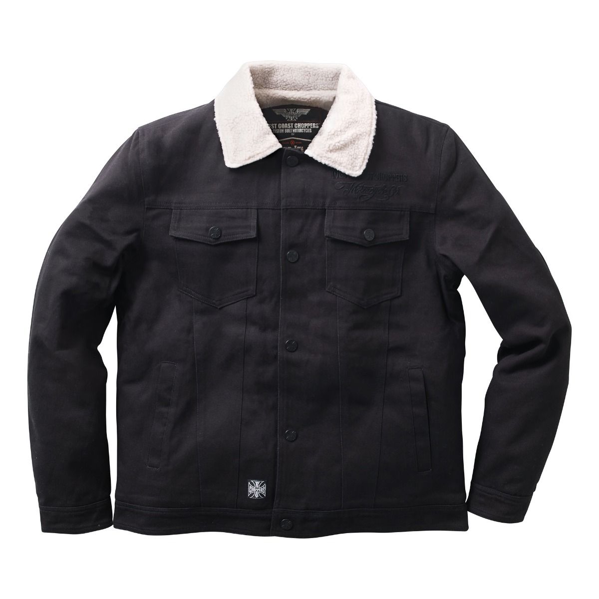THIS BLACK LINED DENIM JACKET IS A TRUE CLASSIC. THE LINED JACKET HAS WESTERN-INPSIRED DETAILS LIKE FLAP FRONT POCKETS WITH SNAPS, SIDE HAND POCKETS, BUTTON FRONT AND A WARM, COZY SHERPA LINING. LINING: SHERPA SLEEVE LENGTH: LONG FRONT CLOSURE: BUTTONS NUMBER OF FRONT POCKETS: 2 CHEST AND 2 HAND POCKETS COLLAR: SPREAD INSIDE POCKET CUFF: ONE SNAP CLOSURE WEST COAST CHOPPERS TONAL EMBROIDERY WOVEN PATCH AT BOTTOM PLACKET EMBOSSED BUTTONS THE JACKETS COME IN A COMFORT CUT.