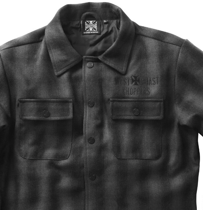 -WEST COAST CHOPPERS EMBROIDERY ABOVE THE LEFT CHEST POCKET: