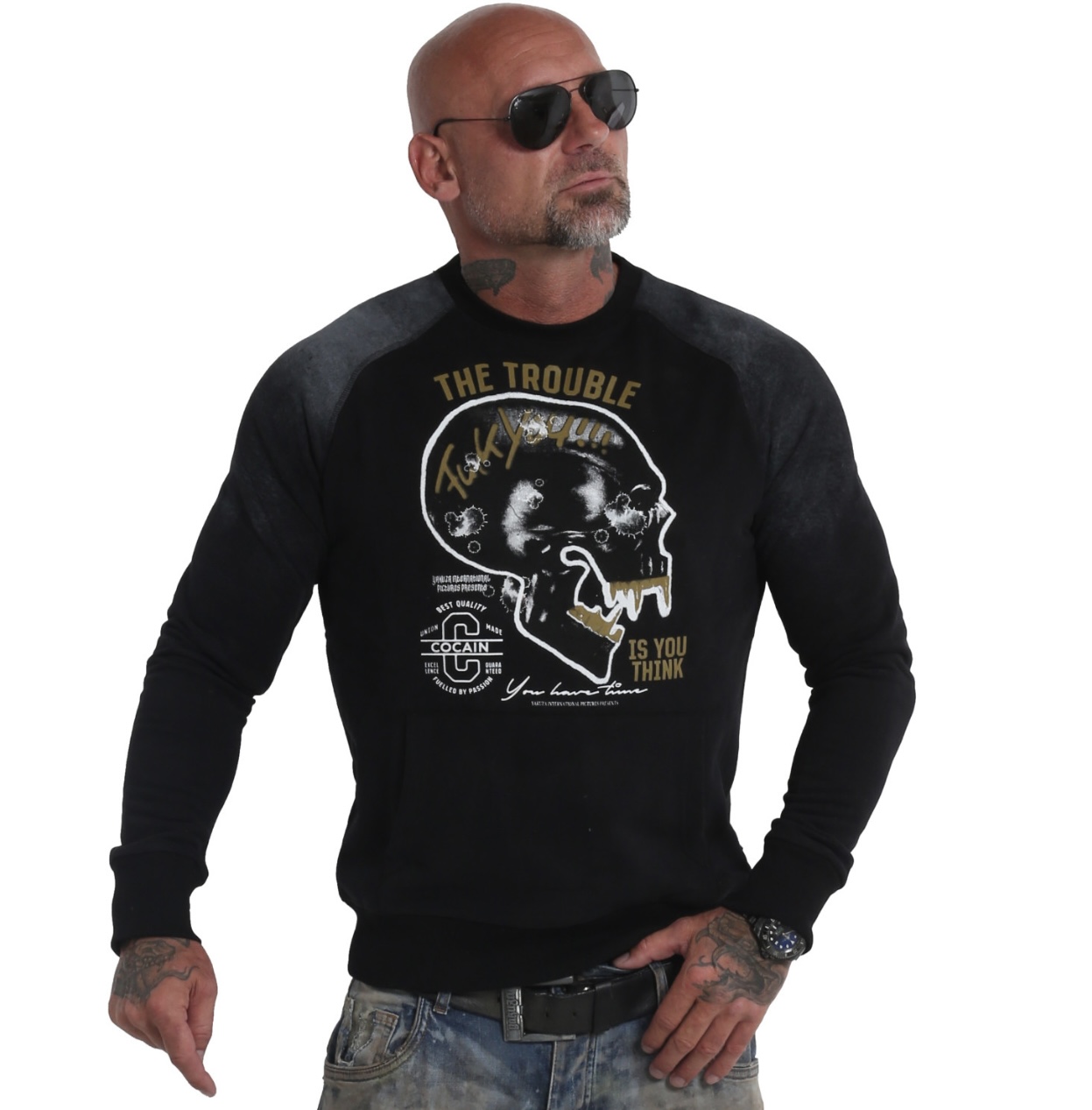 Yakuza collegepaita, FckU. Raglanhihainen musta collegepaita, jossa isot printit edessä ja takana. Edessä kengurutasku, pääntiellä, helmassa ja hihansuissa resorit. Materiaali 80 % puuvilla, 20 % polyesteri.