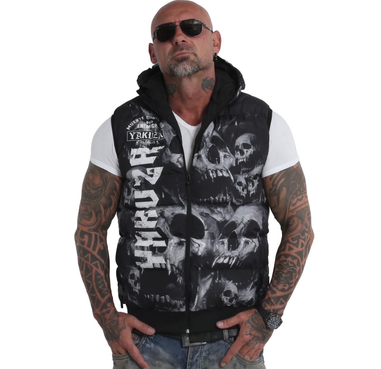 <html><p>Yakuza Toppaliivi Muerte Skull. Mustavalkoinen toppaliivi hupulla ja vetoketjukiinnirtyksellä. Edessä myös kaksi vetoketjullista taskua. Upea allover-printti ! Materiaali 100 % polyesteri. Kuvan malli on 1,82 m pitkä ja käyttää kokoa XL.</p></html>